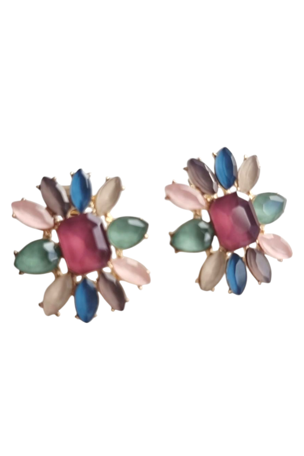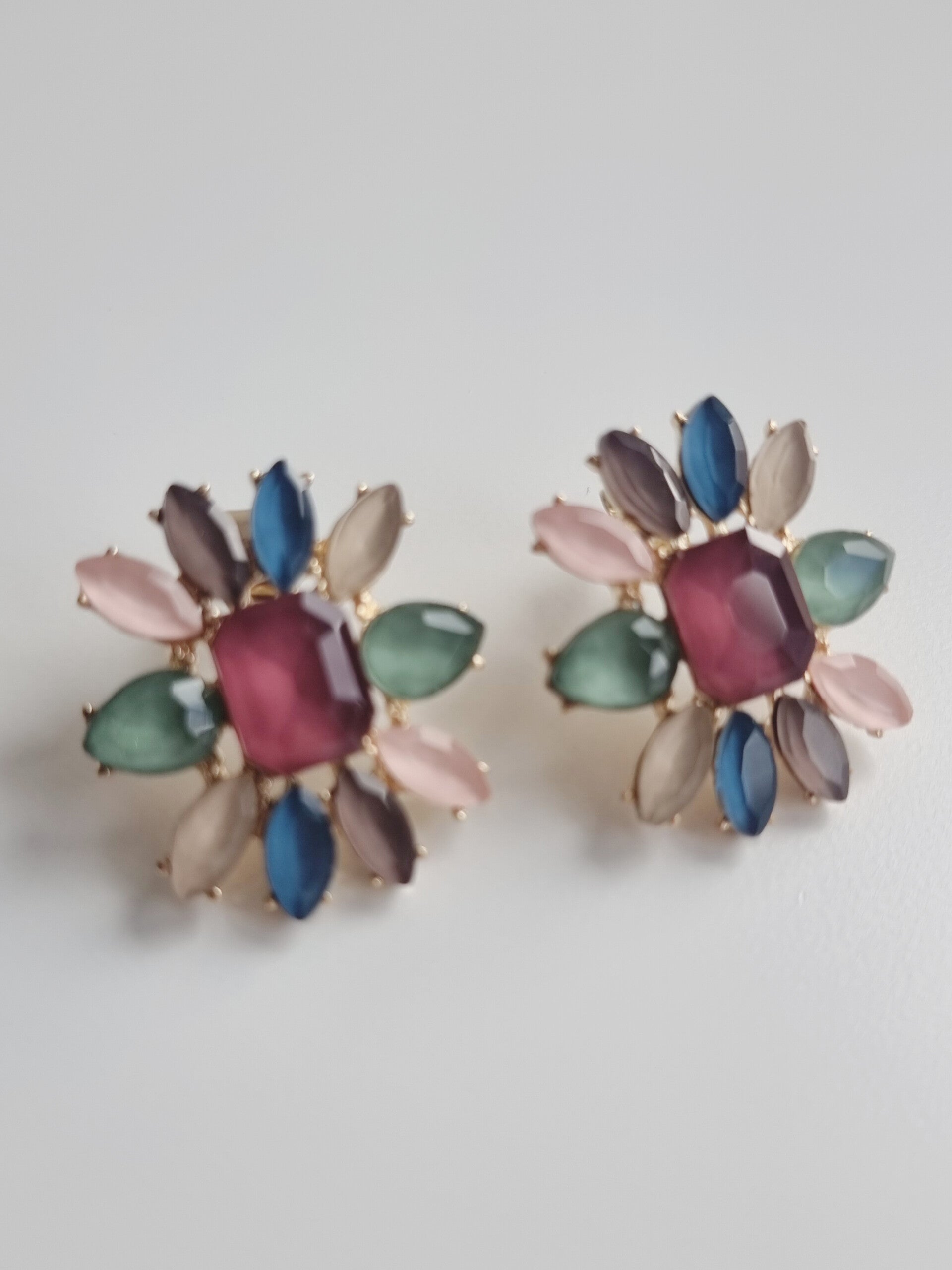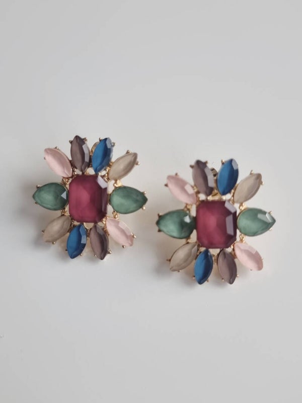 Los Pendientes Diana son la representación perfecta de la elegancia en su forma más sutil. Su diseño en forma de pequeñas flores adornadas con piedras en tonos suaves de verde claro, azul, rosa y rojo los convierte en el accesorio ideal para ocasiones especiales, aportando un toque femenino y refinado a cualquier look.