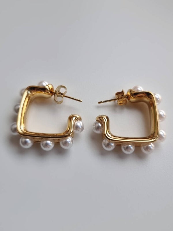 Elaborados en acero inoxidable bañado en oro 18K, estos pendientes reflejan la esencia del glamour hollywoodense, convirtiéndose en el complemento ideal para ocasiones especiales o para añadir un toque de lujo discreto a cualquier look.