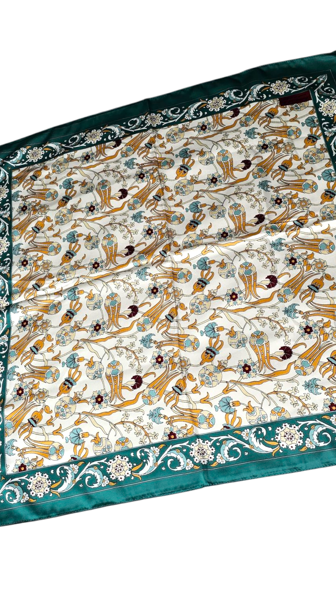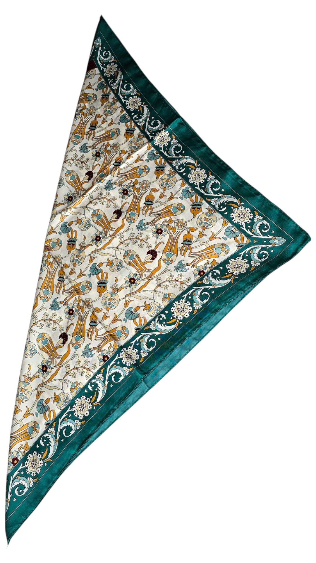 El Pañuelo Diana es la fusión perfecta entre estilo y naturaleza, con un diseño en tonos verdes, marrones y naranjas que evocan la calidez de los días soleados y la frescura de la primavera. Su estampado versátil lo convierte en un accesorio imprescindible para quienes buscan un toque sofisticado y vibrante en sus looks.
