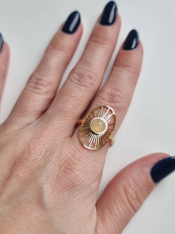 Inspirado en la riqueza cultural y los paisajes de Albania, este anillo captura la esencia de la tierra con su imponente piedra en tonos marrones y ocres, evocando las montañas, los bosques y la calidez de los paisajes albaneses.