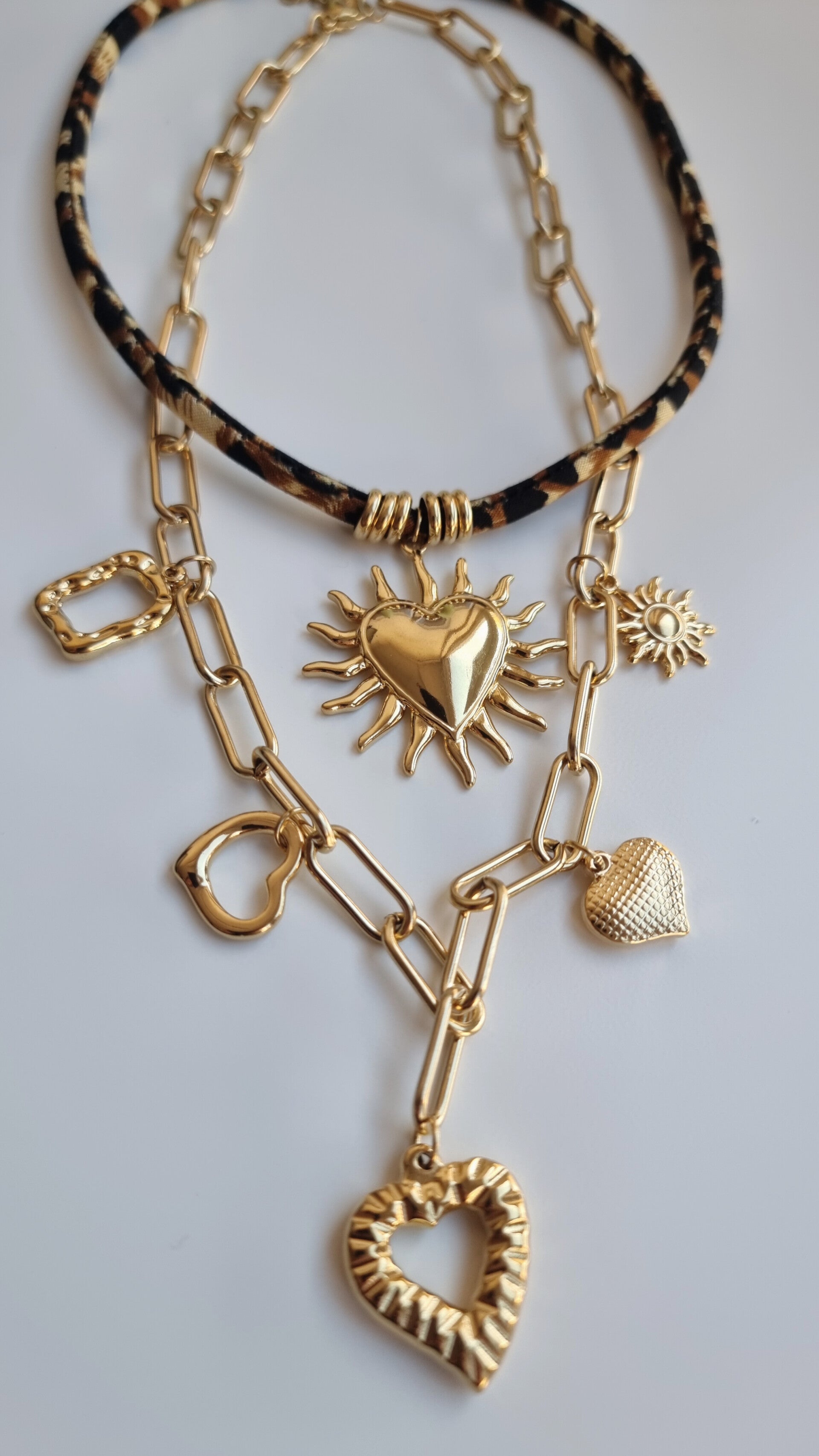 El Collar Animal Print es una pieza que fusiona la fuerza del estilo felino con la delicadeza de un corazón dorado como dije central. Su cuerda estampada de pantera le da un toque atrevido y moderno, mientras que el corazón aporta ese detalle romántico y femenino.