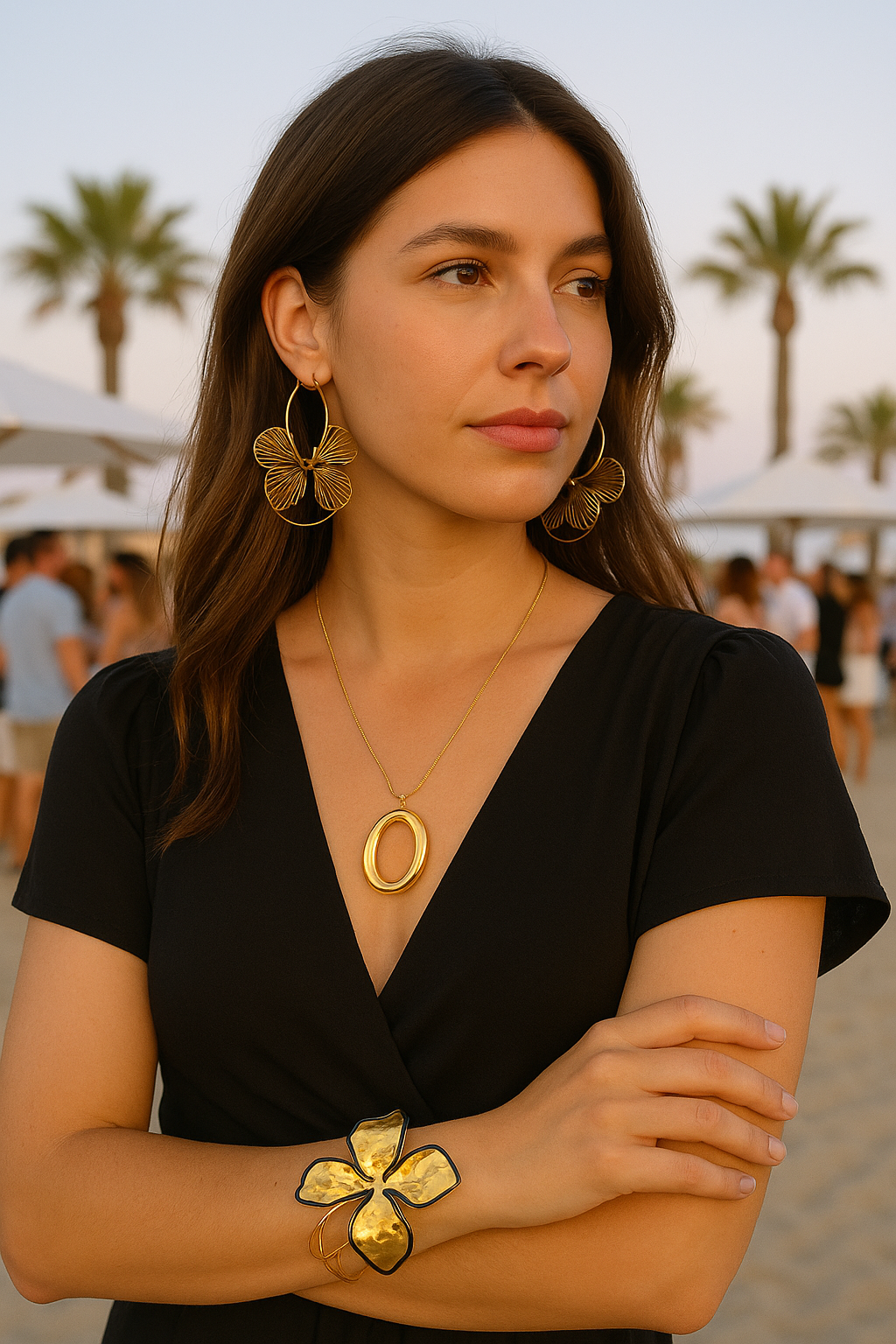 Imagina llevarlo en una cena al aire libre junto al mar, combinándolo con un vestido fluido y sandalias elegantes. O úsalo en tu día a día para realzar cualquier look casual con un toque de distinción. Su ligereza y diseño lo hacen perfecto para mujeres que buscan un accesorio llamativo sin perder comodidad.