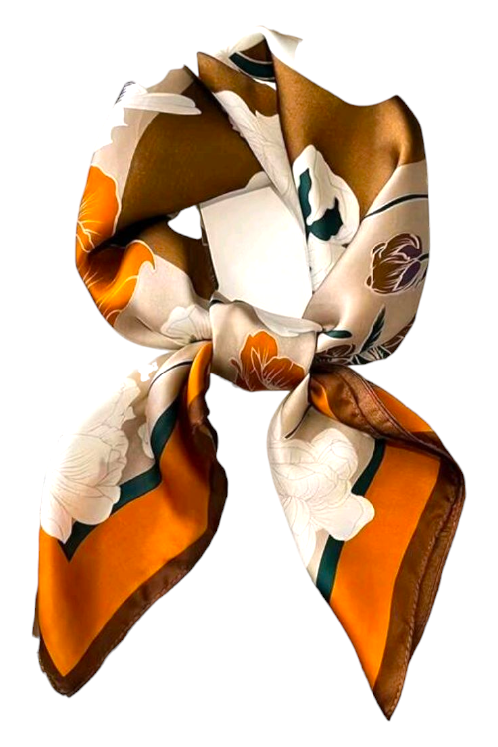 El Pañuelo Balbocer es la combinación perfecta entre sofisticación y calidez. Su estampado floral en tonos naranja, beige y marrón evoca la belleza de los paisajes otoñales, aportando un aire elegante y atemporal a cualquier look.