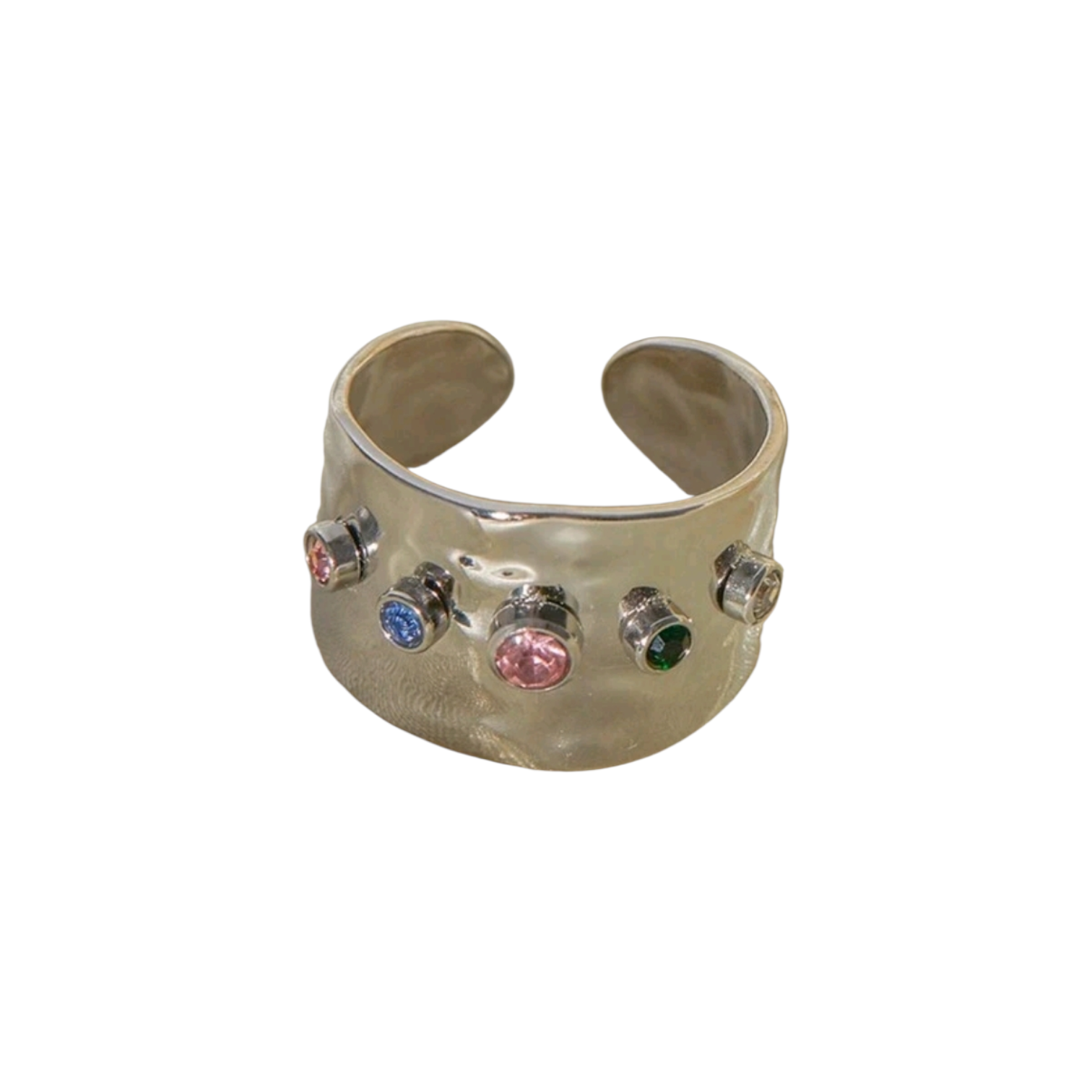 Su diseño minimalista y cómodo combina la resistencia del acero inoxidable bañado en oro de 18K con la delicadeza de sus piedras de colores, creando un equilibrio ideal entre elegancia y frescura. Cada piedra aporta un toque vibrante que simboliza la diversidad, la luz y la positividad, haciendo de este anillo un complemento especial para cualquier ocasión.