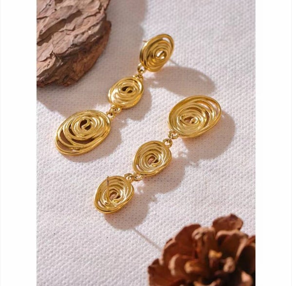 Baños en oro de 18 quilates, su tono dorado aporta un aire distinguido y cómodo, ideal para ocasiones especiales y eventos en los que quieras brillar con un complemento llamativo y elegante.