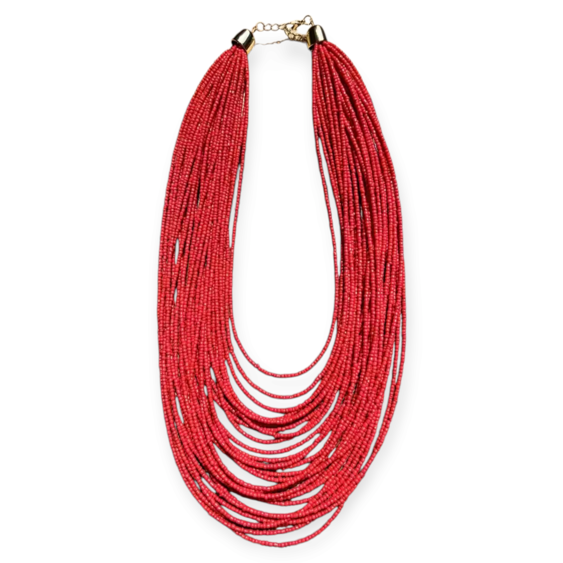 El Collar Dorita es una joya bohemia hecha a mano con piedras rojas en capas, perfecta para quienes buscan un accesorio con carácter y estilo natural. Su diseño multicapa y artesanal lo convierte en el complemento ideal para vacaciones, días de playa o escapadas de verano, aportando un toque de color, frescura y autenticidad a tu look.