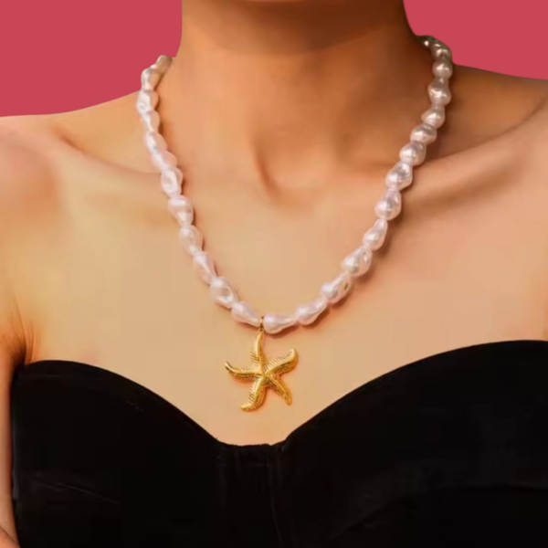 ✔ Diseño: Cadena de piedra natural con estrella de acero inoxidable.