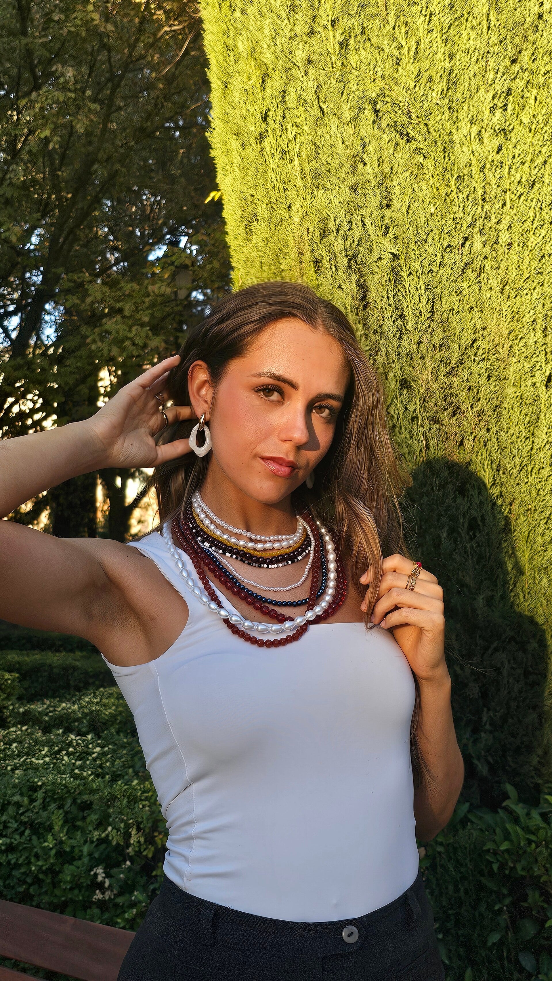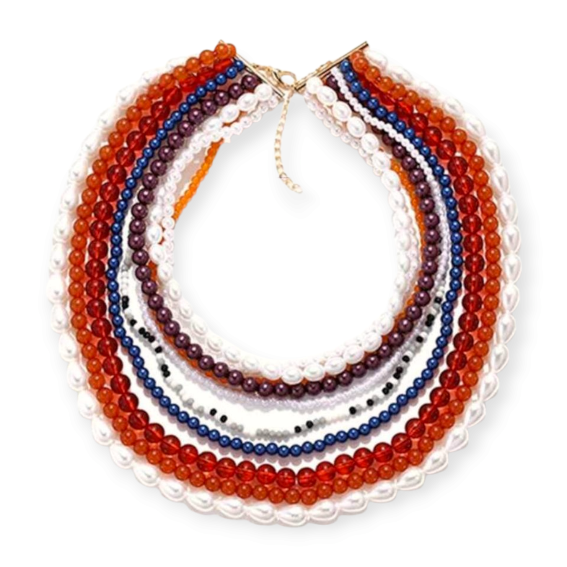 El Collar Fanática es una joya statement espectacular que fusiona el espíritu vintage con una explosión de colores cálidos. Su diseño multicapa en cascada combina cuentas en tonos marrones, burdeos, blancos, rosas y naranjas, logrando una pieza única, atrevida y elegante que no pasa desapercibida.