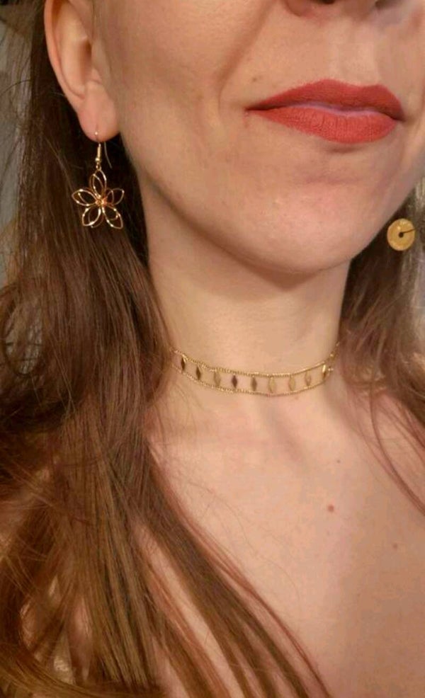 El Choker Chocolate es una gargantilla de doble capa, pensada para abrazar el cuello con delicadeza y estilo. Su diseño ajustado y minimalista lo convierte en una joya tan sofisticada como actual, perfecta para elevar cualquier look con un toque moderno y femenino.