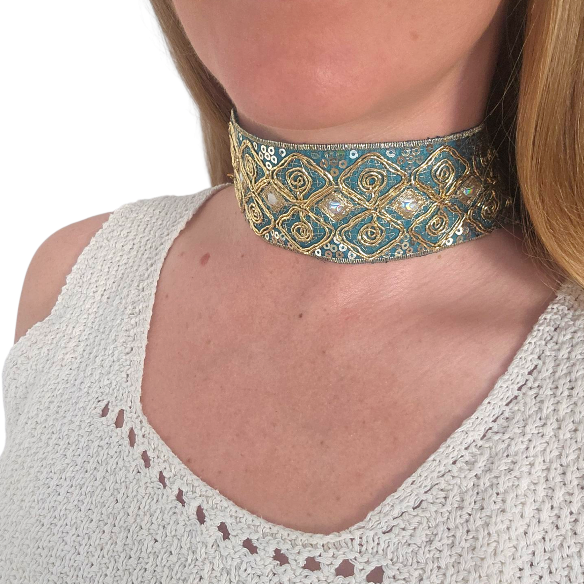 El Choker Celestina es una pieza única, hecha a mano con materiales ligeros y resistentes que te acompañarán en los días más calurosos sin perder estilo ni comodidad. Fabricado en tela especial y con cierre de acero inoxidable, este choker es resistente al agua y perfecto para tus escapadas veraniegas, tardes de terraceo o noches de fiesta junto al mar.