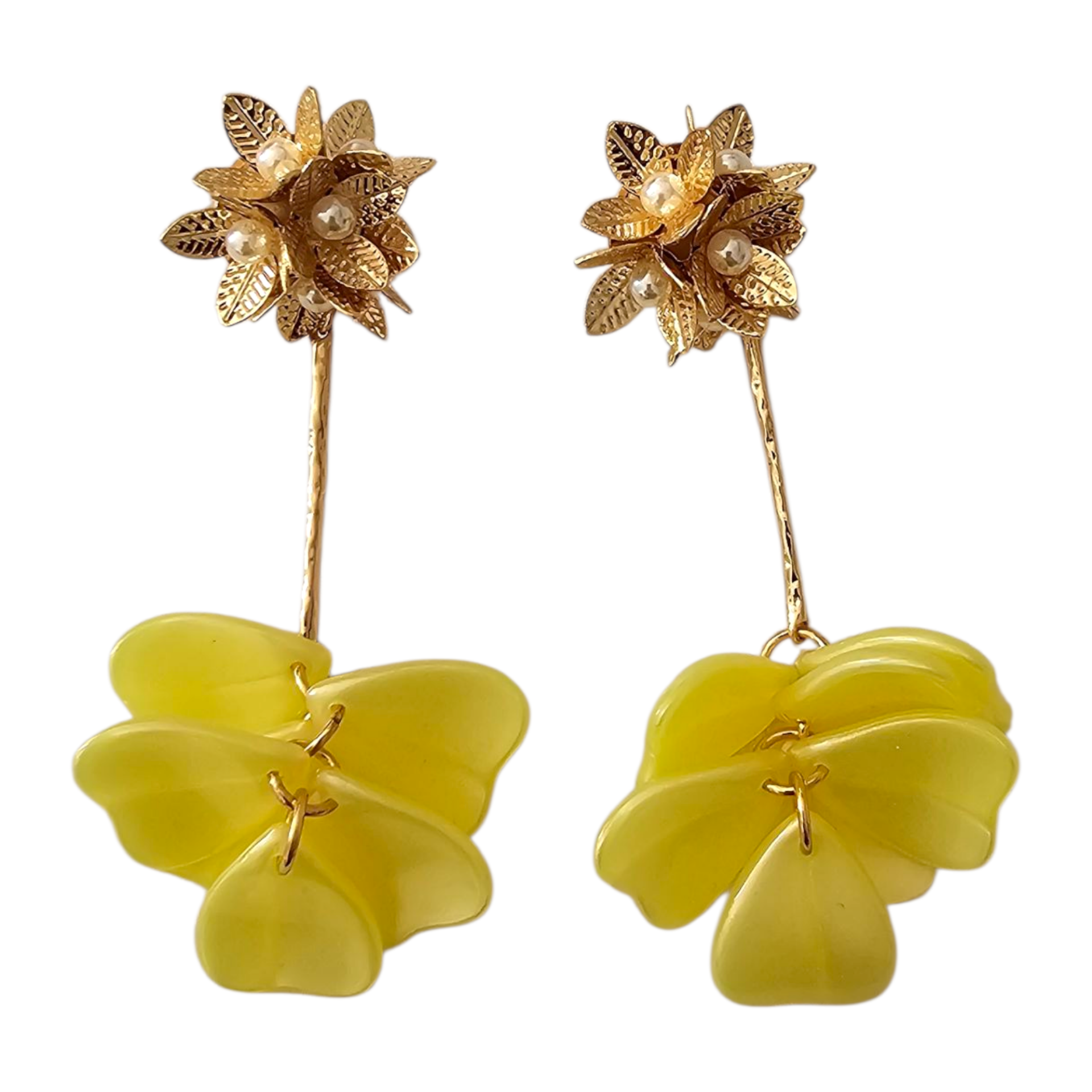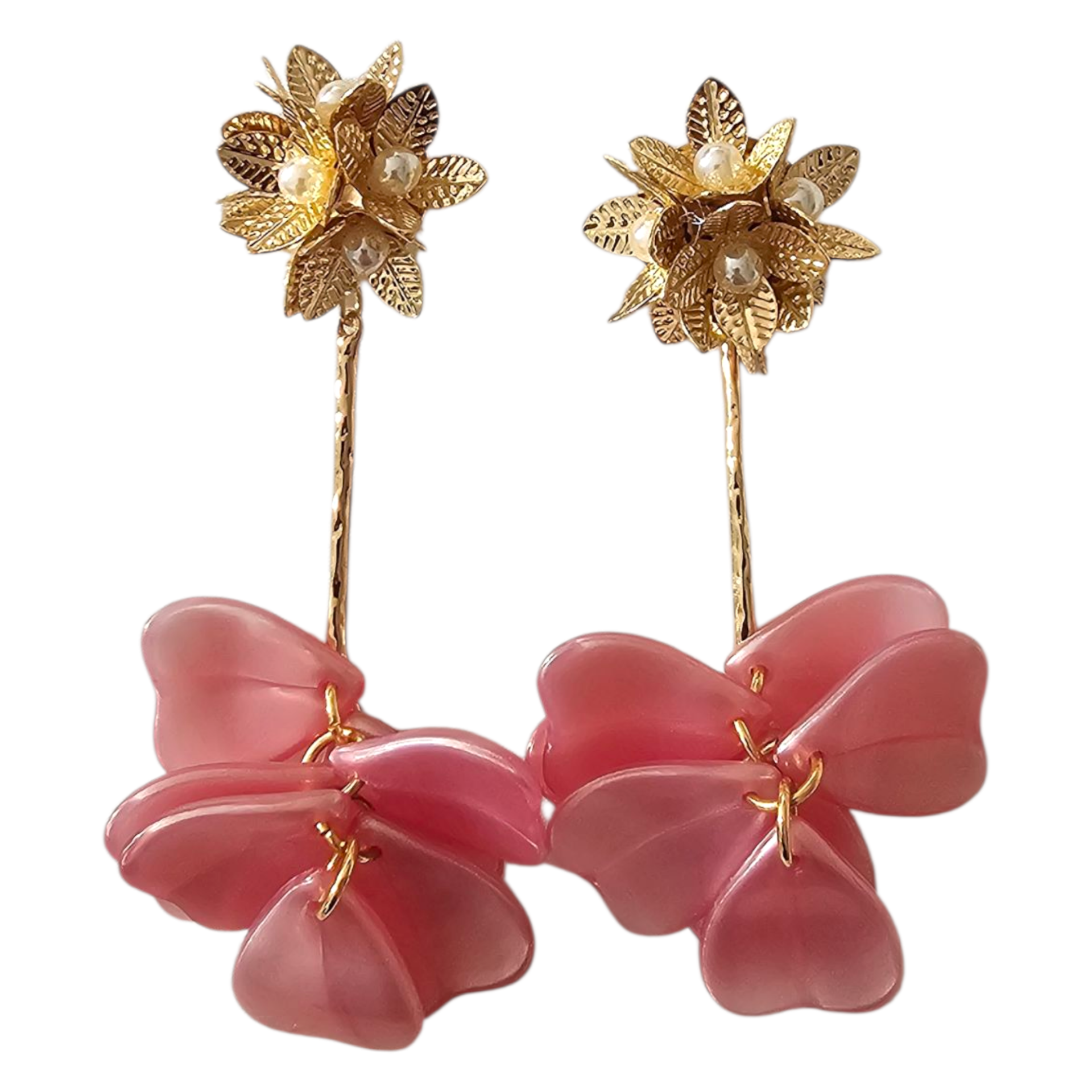 Con una base dorada en forma de flor, decorada con perlas blancas y destellos brillantes, los pétalos cuelgan en cascada de forma sutil y elegante. A pesar de su tamaño de 10 cm, son ligeros y cómodos, perfectos para llevar durante horas sin notar que los llevas.