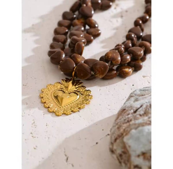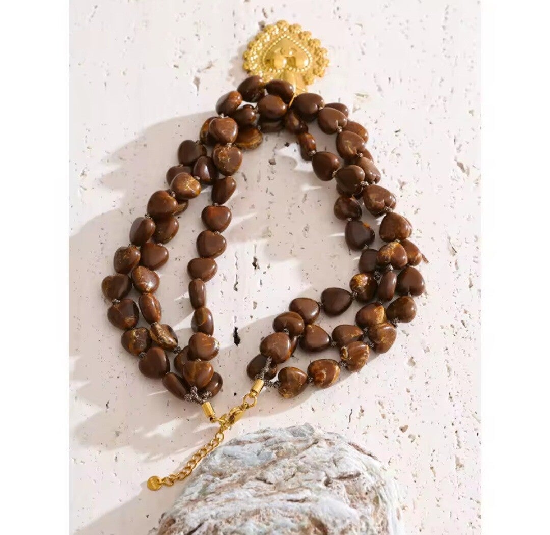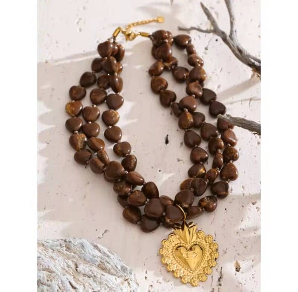 El Collar Corina es una joya única y original, pensada para realzar tu estilo en las temporadas más frías. Formado por capas de cuentas acrílicas que aportan textura y volumen, tiene como protagonista un colgante de corazón elegante, símbolo de distinción y fuerza personal.